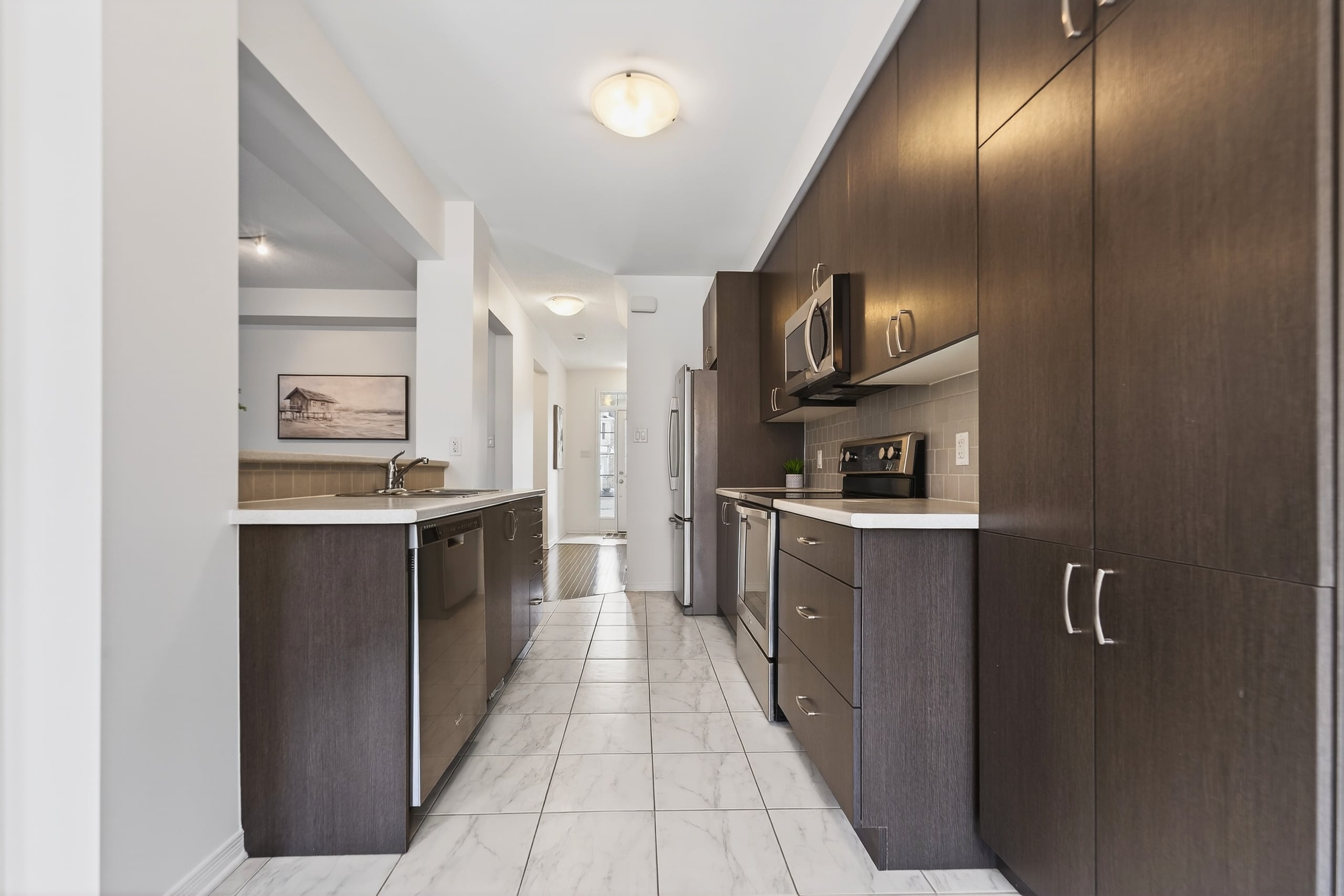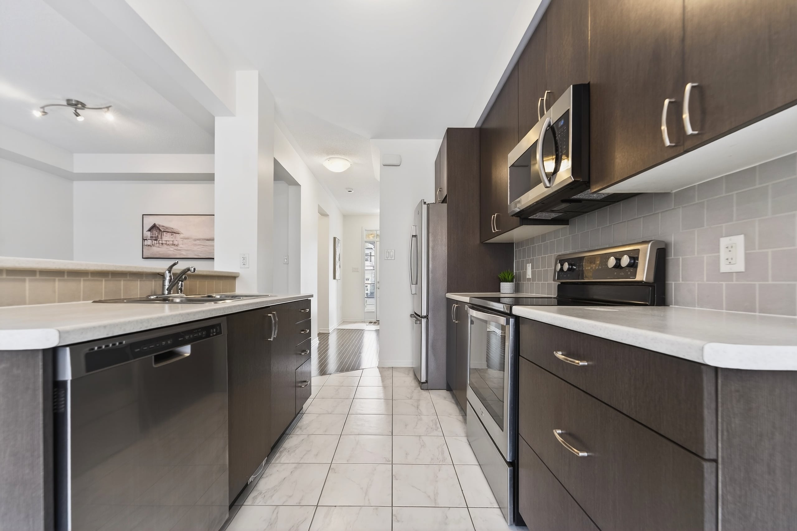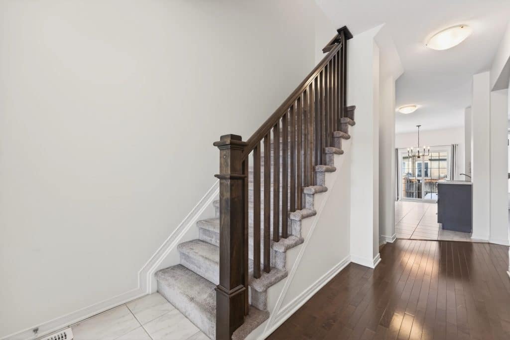 Beautiful Townhome Situated on a Private Quiet Street. This Open Concept Floor-Plan Features 9Ft Ceilings Though-Out the Main Level. Spacious Front Foyer w/a Mudroom Off the Garage & 2 Piece Bath. Ceramic Tile in all Bathrooms, Foyer & Kitchen. Freshly Painted throughout(2026). Beautiful Large Windows Offers Tons of Natural Light. Open Concept Dining & Living Rm, Beautifully Maintained Hardwood Floors & Spacious Eat-In Area. Generous Size Kitchen w/Subway Tile Backsplash, Stainless Steel Appliances & Additional Pantry for More Storage. Fully Finished Lower Level Family Room is a Generous Size & Offers Tons of Storage & Rough-In Bath w/Door Access Complete. 3 Spacious Bedrooms on 2nd Level. Primary Offer Large WIC, 4 Piece Ensuite w/Upgraded Shower w/Glass Door, Lg Tub & Spacious Vanity. FANTASTIC LOCATION within Walking Distance of Parks, Splashpad, Outdoor Rink, Athletic Field & Tons of Amenities. 24 hours irrevocable for all offers. Some photos virtually staged.